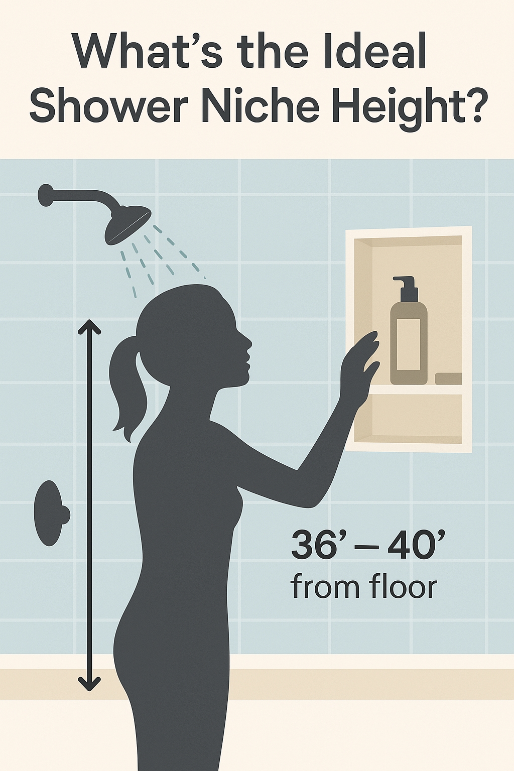 The standard height for a shower niche in a walk-in shower is 36 to 40 inches from the floor (to…