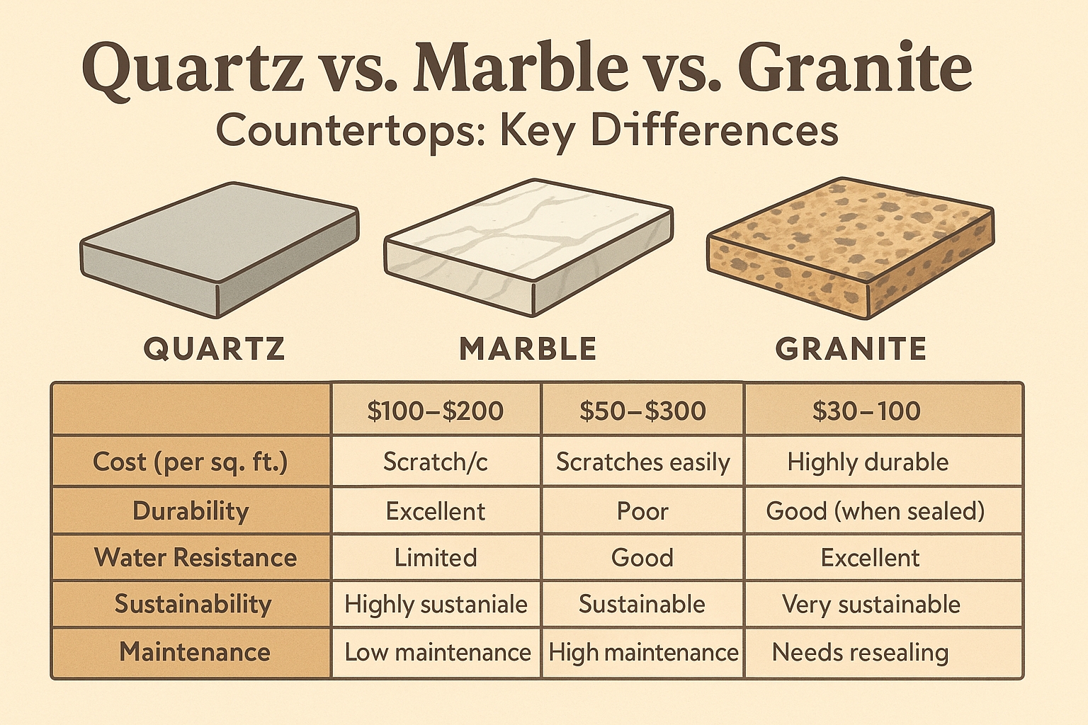 If you’re deciding between quartz, marble, or granite for your countertops, each material performs differently when it comes to cost,…